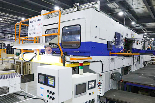 自動積み込み装置 - 自動で製品の搬送を行う無人フォークリフトを導入しました。自律走行で安全でミスのない製品の運搬を行います。運搬した製品は自動積み込み装置によって、人手を介さずにトラックに積み込まれます。
